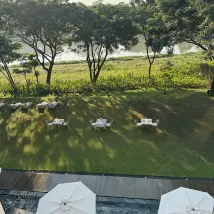Ich hatte zunächst keine großen Erwartungen, aber es hat meine Erwartungen übertroffen, außer dass das Frühstück nicht reichhaltig genug ist. Das Hotel liegt 5 Gehminuten vom Blauen Tempel entfernt . Vom Korridor aus kann man den Fluss und das Schwimmbad sehen. Das Klima gibt es keine Mücken und es fühlt sich gut an, morgens von Vögeln geweckt zu werden.