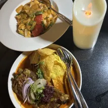 Verschiedenes Frühstück Es gibt auch Khao Soi.