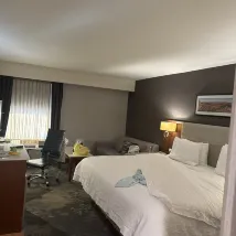 Hotel was ok. Elevator broke down multiple times and was extremely rough when working. It sometimes stopped to early and you had a 6inch step up to the floor. Hallways were usually fairly dirty. Room was ok. Maintenance of room was a little lacking. Toilet didn’t flush right. Carpet was never vacuumed. Never had the right number of towels for people in the room. I believe this os a management issue because what the maid did clean was done well.