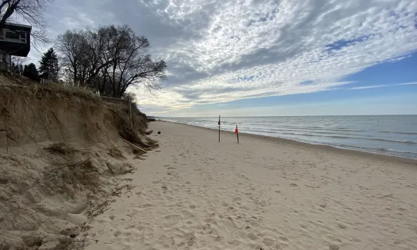 The cottage is a member of The Gordon Beach HomeOwners Assn offering private beach access with a soft Westerly breeze and rising lake water temperatures. Only a 75 minute drive from Chicago and a 90 minute drive from Naperville. This beach front cottage offers the beautiful sunsets of the summer and the clean sandy beaches of Eastern Shore of Lake Michigan. Our 3 bedroom 900 square foot cottage has been the owners weekend retreat until 2008, then they converted the cottage to a rental. Situated on 5/8 of an acre this heavily shaded property offers open space of lawn to play baseball or croquet, or to just sit on the front deck, drink a cold lemonade and enjoy the warm lakefront breeze. The stairs to the beach are fifty feet away where you can situate yourself on the expansive private beach area (patrolled on weekends to keep strangers off) or sit on the public community beach. The private beach is an association beach shared by Gordon Beach families. We have been using this site successfully for 13 years. When comparing properties in this site, check the property address on Google Earth (not Maps) to ensure that the owners description matches the proximity to the Beach or lake front. Most do not match up. Our kitchen was recently updated along with new living room furniture. The second floor has a built in Queen size bed and custom bunk beds with a master suite bathroom and shower. Our beach chairs and umbrellas are always new. We welcome the privilege of hosting your family or group.About pets:Pets allowed: dogs less than 50 lbs per pet (limit 2 pets total).Dogs only..About checkOut:Check out before 10:00 AM.About children:Children allowed: ages 0-17.About checkIn:Check in after 4:00 PM.About smoking:Smoking is not permitted.About minBookingAge:Minimum age to rent: 25.About events:No events allowed.