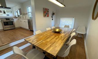 With four bedrooms in the main house, one bedroom in the private pool house, and and a total of three bathrooms, this home provides ample space for everyone to unwind comfortably. The stylish decor and cozy ambiance create an inviting atmosphere that will make you feel right at home. The main house first floor boasts an open floor plan, encompassing a fully-equipped kitchen with stainless steel appliances, a vibrant living room with an L-shaped sofa and smart TV, and a charming dining room with a wooden table. Coffee enthusiasts will be delighted with the Nespresso machine. Two bedrooms on this level share a full bathroom with a convenient stackable washer/dryer. Ascend to the second floor, where two additional bedrooms await, one of them equipped with a convenient desk. A full bathroom with a walk-in shower adds to the comfort and convenience of this level.