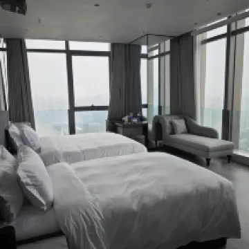 Das Hotel verfügt über bequeme Transportmöglichkeiten, freundlichen Service und saubere und ordentliche Einrichtungen. Vom Kreuzfahrtterminal aus sind es weniger als 10 Minuten zu Fuß zum Hotel, und das Untergeschoss bietet direkten Zugang zur Linie 1, was sehr praktisch ist. Die Landschaft im 49. Stock ist besonders schön. In diesem Gebäude befinden sich mehrere Hotels. Dieses hat die höchste Etage und ist sehr kostengünstig.