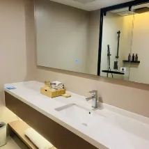 We loved the hotel stay. When we checked in in the late afternoon, the counter staff and the manager are polite, friendly and service oriented. The manger even show us where and how to use the washer and dryer for our laundry and guide us where to eat good hotpot. The room is big and clean. The toilet is automated and seat is always warm. The TV selection includes WeTV and there is free supper too. Great value for money!