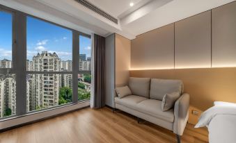 酒店離高鐵站近,坐輕軌過去超級方便,樓下就是輕軌站。房間裏衞生非常乾淨,環境超級温馨舒適,燈一打開拍照片很出片,都有氛圍感,非常滿意,必須五星好評。服務態度和環境上都很好 沒得説 尤其是前台服務特別特別好 上門幫我拿食物去微波爐打熱又送過來。洗衣服也方便,有自助洗衣機。出門在外麪,帶烘乾的洗衣機真的很省時間了,不用擔心第二天衣服沒有幹。