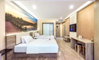 酒店出門就是步行街,距離西南大學榮昌校區很近,不用打車走路最多十分鐘內就能到,報完名帶娃兒買生活用品超級方便。房間比較隔音,打掃得也很乾凈,洗漱用品是那種品質比較不錯的,這次選擇這個店沒有踩坑。特別要表揚下你們的工作人員,服務熱情周到,幫我提行李,給我介紹特色小吃這些,讓我印象很深刻。有機會還會再來光顧的