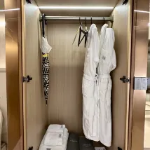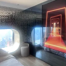 Das Zimmer ist makellos sauber und lichtdurchflutet. Die Ausstattung ist erstklassig und lässt keine Wünsche offen: Ein intelligentes WC, ein Großbildprojektor, ein Dyson-Haartrockner, ein Fendi-Regenschirm, eine große Badewanne, eine private Waschmaschine im Zimmer, eine Kaffeemaschine und ein smarter Sprachassistent sind vorhanden. Abends kann man zudem den beheizten Infinity-Pool auf dem Dach genießen – herrlich entspannend!