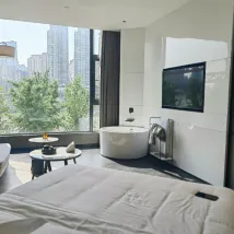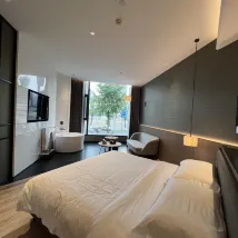 Ein Designerhotel in der Nanbin Road. Der Service an der Rezeption ist herzlich und rücksichtsvoll. Die Umgebung ist komfortabel und modisch und das gesamte Schwarz-Weiß-Farbschema ist sehr cool. Es ist nur wenige Gehminuten von der Südstation der Jangtse-Seilbahn entfernt und führt unterwegs durch Xiahaoli und Longmenhao Old Street, was sich sehr gut für Stadtspaziergänge eignet. Die Zimmerausstattung und -ausstattung ist schick. Das von uns gebuchte Zimmer mit Blick auf den Fluss ist wunderschön und ein tolles Aufenthaltserlebnis.