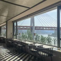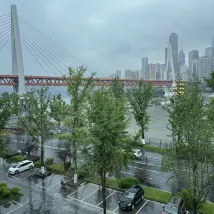 Wenn Sie es nicht eilig haben, ist es wirklich schön, eine Nacht im Café mit Blick auf die Dongshuimen-Brücke und den Jialing-Fluss zu verbringen.