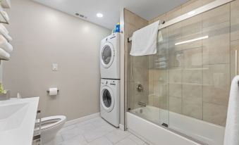 Located in Cincinnati, enjoy what this 1-bedroom apartment has to offer. This delightful space features a serene bedroom with a cozy queen bed, a fabulous living room with two sofa beds, and a bathroom with a relaxing bathtub. Guests can also enjoy amenities like WiFi, AC, and in-unit clothes washer and dryer during their stay. We're happy to assist with any questions while you stay at our apartment.