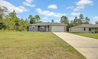 This brand new 3-bedroom 2-bathroom home in Citrus Springs is fully furnished with all amenities for a comfortable stay.