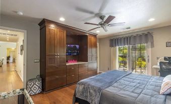 The single-leveled open floor plan is sophisticatedly toned with four bedrooms and three bathrooms. There is an ample parking for all the guests with no additional charge. The fully fenced property gives secure place for your little ones and furry babies to roam around.About pets:Pets allowed: dogs (limit 2 total).About checkOut:Check out before 10:00 AM.About children:Children allowed: ages 0-17.About customRules:- Please don't tamper with any security devices or internet Reuters.