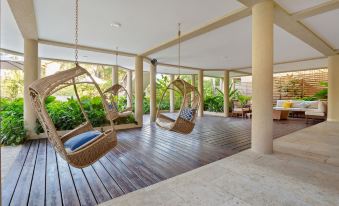 With an emphasis on outdoor living, this boutique villa is designed around its 10-metre infinity pool and white marble terrace, furnished with comfortable sun loungers and a shaded pergola. On the ground level you’ll find a built-in bar, ice well, sink, refrigerator, table and chairs, bean bag chairs, swings and hanging chairs for plenty of relaxed seating. There is also an outdoor shower and half bath for your convenience.