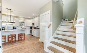 When you arrive, you can park your vehicle in the driveway and/or garage and step into the main level of the home which was designed for gathering with an open concept floor plan. The kitchen is equipped and well stocked with extra dinnerware, glassware, and silverware, plus everything needed for your cooking, baking and storage needs.