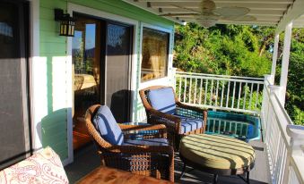My wife and I decided to celebrate our 25th anniversary on St. John, and picked Linda & Randall’s Meritage Cottage to stay. After visiting there for a week, we both agree this is a wonderful little cottage, perfect for two, with great views over the hills and shore outside Cruz Bay. Our favorite spot was the porch, relaxing and taking in the views and breeze from the water. Cruz Bay was just a few minutes drive, and access to the rest of the island was just as easy (assuming you have a Jeep.) Abby (the local manager and caretaker) ensured everything was in perfect shape for our visit, and after meeting us in Cruz Bay, escorted us to the cottage and made sure we were comfortable with everything there. The cottage has a very fast and powerful air conditioner, which we only had to turn on in the late afternoons when we returned. Otherwise, ocean breezes were very effective at keeping the cottage comfortable during the night and into the morning. The cottage has a small but efficient gas stove, gas grill, and regular refrigerator if you want to prepare meals there. WiFi and internet access was spotless, and while the cottage had a nice television, we can’t make any comment on the cable quality as we didn’t watch TV while we were there. Likewise, the hot tub looked clean and inviting, but we’re just not hot tub people.