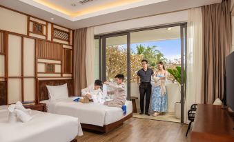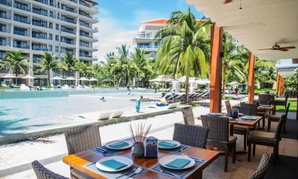 Breakfast came with an amazing sea view and a wide variety of food, from local dishes to international options. The cold Vietnamese coffee was a highlight. The beach was beautiful and safe for the whole family, with lifeguards always keeping watch.