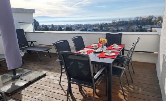 Der nächstgelegene Flughafen ist Flughafen Friedrichshafen, der etwa 28 Minuten mit dem Auto von der Unterkunft entfernt (24,8 km) ist.Wie komme ich von dem nächstgelegenen Flughafen zu Large vacation apartment for up to 6 people with lake view, underfloor heating. 3 bedrooms?