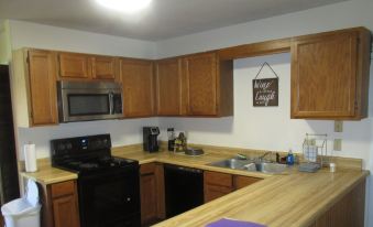 This unit, while lacking in sex appeal from the outside, is comfortable inside. It is, however, one of the few we've stayed in that did not have even salt and pepper. We bring that stuff with us but wonder how others cook if they don't. The check-in went smoothly and we had no problems while there for four nights.