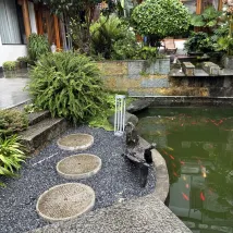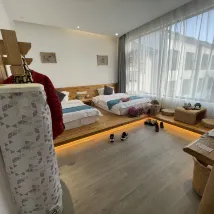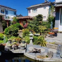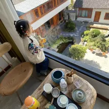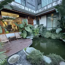 Lovely place with a beautiful garden and a tea house. Lots of cats and a dog were roaming around are kept by the innkeeper. The location is quite strategic to Dali Ancient Town and Muslim Street. The family room has lots of child friendly decoration and amenities. My small petty preference is that the toiletries they provided smells more masculine rather than unisex/all gender all age friendly, and even though the water came in bottles & mini dispenser, there were no tea nor coffee provided in the room. However, common self-service laundry was convenient and they had a private drier set up in the room!