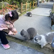 Erwähnenswert ist auch, dass die Dekoration dieses B&B wirklich schön ist. Es gibt auch einen Corgi und mehrere kurzbeinige Katzen. Meine Tochter hat die Katzenstreifen extra mitgebracht und sie mit der Erlaubnis des Chefs gefüttert, so süß.