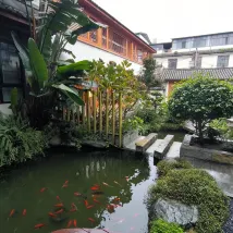 Umgebung: Die Umgebung des kleinen Innenhofs ist großartig. Es gibt auch einen kleinen Pavillon, eine kleine Brücke, fließendes Wasser, einen Teich mit Fischen und die attraktivsten zehn Katzen (Ruyi). , Dingdang usw.) und ein Hund (glückverheißend), es gibt eine Schildkröte im großen Landschaftsbonsai in der Haupthalle drinnen.