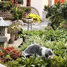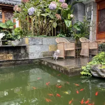 She Yu Inn was the first home stay I’ve ever stayed in Dali. It didn’t disappoint me at all. She Yu has a well maintained beautiful garden featuring a pool with golden fish. The pool is well designed wandering through the garden full of local plants and flowers. Depending on the season it offers a variety of colours. As it is early autumn now, hydrangeas and bougainvillea are the dominant colours. There are a dozen of cats with different breeds living on site which are all very friendly and playful. The cats are surprisingly led by the only one corgi whose name is Ji Xiang or lucky or auspicious in English. If you are into Chinese tea culture and calligraphy, you are lucky to spend time in the onsite tea house. The suite I stayed in has traditional wooden handmade furniture which are all very beautiful. The queen size bed is very comfortable and bed linen is clean and fresh. The suite has all the facilities I needed to make my stay comfortable and enjoyable including a big bath tub, clothes dryer and bathroom ceiling heater. Staff and the owner are all very friendly and helpful. I left my stuff behind after checking out. The staff offered free shipping to my current hotel which was so sweet. The location is perfect as it is not far from the South Gate of Dali ancient town but stays away from noisy and busy streets. I can see Cang Shan mountains in my room too. No matter you are travelling solo or with families and friends you will feel like home in She Yu just like me. With all the wonderful memories I continue my journey through Yu Nan. I know I will come back here in the near future. Thanks to all the staff and the owner in She Yu who made my stay so welcoming. All the best and take care until we meet again