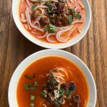 Das Frühstück gibt es gleich auf der anderen Straßenseite. Die Wontons sind anders als im Süden.