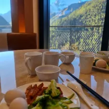 This hotel stay had been one of my all time favorites. The staff were extremely helpful, I got an upgrade to their terrace suite which had a wonderful view of the mountains and over the village of Yading. All of the amenities worked without a problem and the hotel is within walking distance of the busses that take you to and from the scenic spot. However the hotel.also.offers a car service for free that takes you to the entrance of the hiking trail. Also the breakfast was very delicious and more than enough for one person. Overall a perfect experience.