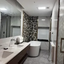The best hotel we stayed in! Room was spacious and clean, great bathrobes and towels, heated floors, very comfortable bed, the bathtub was wonderful, smart toilet and a nice view. Staff were nice. Only thing to mention- when we first checked in we were shown a different room than the one I booked (no bathtub, no view and also much smaller). When I asked why the room is different than the picture, staff claimed this is an upgraded room (I honestly couldn’t see anything better and “upgraded” in the new room), we asked to have the original room we booked and they didn’t have an issue with this.