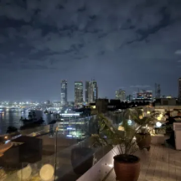 The hotel’s in a great spot! The rooftop is perfect for enjoying the night view, and the staff are super friendly and helpful.
