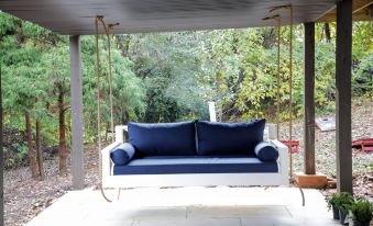 Modern A frame cottage nestled in the North Ga Mountains with partial Lake view and private dock. Home feels far from city surrounded by trees and only five minutes away from shopping and food. This is a true A frame Loft home with lots of sunlight. It is three bedroom, 3 Bath home. Master Bed is located on the loft area with a sitting area, and private shower bath. Main level has the second bedroom with Queen size bed and shared combination tub/ shower bath room. Third bedroom located on Ground floor , with Shared Shower bath room. Ground Floor also has a Living area with Television and sofa and chairs and Ping Pong Table. It is a walk out to covered patio with a twin size bed swing, overlooking the fire pit and lake.