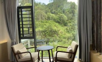 酒店就在靠近德天瀑布的位置,停車便利。老闆娘還可以代買票,還接送我們去景區,省了觀光車的費用,路程就5分鐘左右,我們早上8點半到直接坐上了第一班竹筏,完美避開人潮和熱陽。隔壁酒店有餐食也很方便。去藍洞咖啡,碩龍鎮也很近。晚飯後孩子們在庭院伴着晚霞吹着山風玩耍,甚是愜意!
