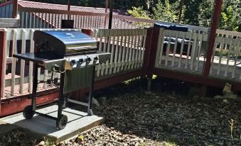 This property was perfect for a short getaway. My husband and I brought our two dogs with us for the first time. They loved swimming in the lake and the views from inside the cabin. We had everything we needed to cook a few meals. The bed and linens were a treat. The outside deck railing is a little precarious. Other than that this house is in a perfect location and we will definitely be returning.