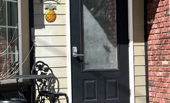Downtown Studio is a private apartment with a front and back door. The back door provides easy access to our common area, and we also have a front common area with a central fountain and benches overlooking the square.