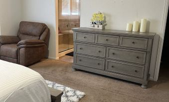 The bedrooms are thoughtfully designed with a king-size bed in one, a queen-size bed in another, and a queen-size bed in the third room. Indulge in comfort during your stay as all of our bedrooms feature luxurious Tempur-Pedic mattresses. With 2.5 bathrooms, getting ready in the mornings will be a breeze.