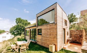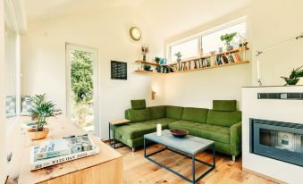 Tinyhouse Minimalus mit Panorama Schlafloft im Grünen mit Outdoordusche