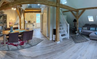 In the lower area you will find the fully equipped kitchen with dining area and a living area with a comfortable sofa landscape (incl. Sleep function). Flat screen, DVD and free WiFi are also available, as is the luxurious daylight bathroom with a large shower. You can reach the cozy sleeping loft with a double bed via a staircase.About pets:No pets allowed.About checkOut:Check out before 11:00 AM.About children:Adults only.About checkIn:Check in after 4:00 PM.About smoking:Smoking is not permitted.About events:No events allowed.