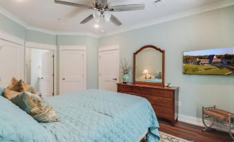 Consider Oakview Condo II your home away from home while you visit Diamondhead on Bay Saint Louis. Ground Floor; no stairs! Less than 20 minutes to the beach! This phenomenal property boasts 2 full bedrooms with queen beds and an office with 1 twin bed, along with 2 bathrooms equipped with all the essentials. Serenity Oaks of Diamondhead adjacent to the Diamondhead Country Club & Golf Course. Nicely appointed newly built home featuring coffee bar, covered patio, and a large great room: living room, dining room and full kitchen with quartz countertops and stainless appliances. Smart TV’s & Fast WiFi. Walk or cart to The Club for Golfing and Dining. We have multiple condos for friends to come along. Kickback, relax, and enjoy everything Diamondhead and our condo has to offer.