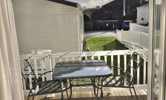 This 2 bedroom lodge sleeps up to 6 guests with a fully equipped kitchen to support a self catering holiday with bedding and towels provided. The accommodation has its own private outdoor decking area that is southward facing for sitting and relaxing in.