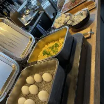 Das Interieur wirkt neu. Das Frühstück ist angemessen.