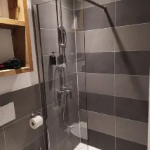 Das Badezimmer hatte keine Badewanne und der Duschraum hatte keine Tür, die man hätte abdichten können, sodass ich beim Duschen aufpassen musste, dass ich nicht zu viel Wasser spritzte, was ich als negativen Punkt empfand.
