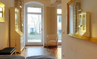 The apartment is located in Dresden's liveliest and most innovative district, in Dresden-Neustadt. Here, in the center of the pub and artists quarter, is the Kunsthofpassage - now a Dresden tourist attraction. The quiet apartment, with terrace and windows to the garden, has been carefully restored and is now an open plan apartment with a separate sleeping area and open kitchen - but with the charm of the early days through its more than 100 years old floorboards and doors.About pets:No pets allowed.About checkOut:Check out before 11:00 AM.About children:Children allowed: ages 0-17.About checkIn:Check in after 2:00 PM.About smoking:Smoking is not permitted.Rauchen auf der Terrasse erlaubt.About minBookingAge:Minimum age to rent: 18.About events:No events allowed.