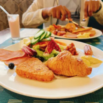 Das Hotel liegt in fußläufiger Entfernung zu Restaurants, Cafés mit arabischen Süßigkeiten und Supermärkten – also wirklich super gelegen! Ich hatte kein Frühstück gebucht und habe daher in einem nahegelegenen Restaurant gegessen.