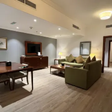 I stayed in this hotel for a total of 5 nights, it had good staff and almost decent service. In my opinion, his breakfast was repetitive and not interesting. The view from my room was facing the wall of the building due to the fact that it was the last floor. 2 issues upset me, one is that I was fined 35 ٍَِAED for a small glass and they forgot to clean the room on the first day of my stay, which I called to inform about this issue.