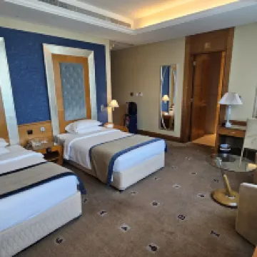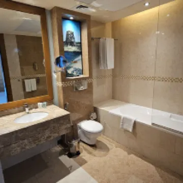 Ich bekam ein Zimmer im 4. Stock, und das Personal wies mich offen auf mögliche Lärmbelästigungen aus den oberen Stockwerken hin, die durch einen russischen Club im 16. Stock verursacht werden. Ich schätzte diese Ehrlichkeit. Das Zimmer selbst war im Vergleich zu benachbarten Hotels recht geräumig. Der Vorhang war leicht beschädigt (nicht weiter schlimm, da er sich trotzdem schließen ließ), das Badezimmer war in Ordnung und das Bett sauber, ohne Staub oder fragwürdige Kissen. Ich bat außerdem um Hausschuhe und eine Zahnbürste, die mir sofort gebracht wurden – ein Pluspunkt. Allerdings fand ich es seltsam, dass das Telefon im Zimmer nicht richtig funktionierte. Es gab keine Möglichkeit, die Rezeption oder den Zimmerservice direkt zu erreichen, und ich konnte auch nichts hören. Als ich dies ansprach, wurde mir mitgeteilt, dass das Hotel keinen Zimmerservice anbietet. Das fand ich für ein 4-Sterne-Hotel überraschend.