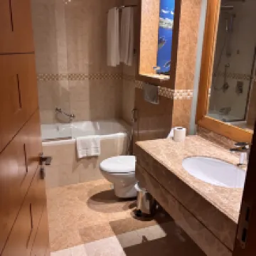 Die Lage ist hervorragend, in unmittelbarer Nähe zur U-Bahn-Station, der Service ist gut, Steuern können mit Karte bezahlt werden und ein 24-Stunden-Supermarkt befindet sich direkt nebenan! Außerdem ist die Haltestelle des kostenlosen Shuttlebusses nach Abu Dhabi ganz in der Nähe.