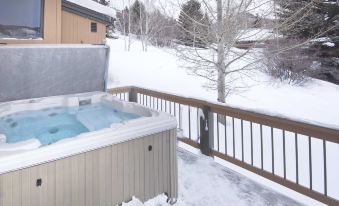 Enterprisingly exceptional in its execution. Even more exciting when you let the sunlight in by electronically controlling the blinds with state of the art technology. With a whir and a whoosh the blinds open onto a resplendent valley of wonder, while the light floods into the sunken living room with its high ceilings and statuesque windows. It brightens the extravagant interior, illuminating the artistically placed abstract modern art pieces, curated to add just the right amount of color and texture. It’s a visual feast! And every gathering is a festive occasion with the snow frosted potted evergreen that holds space in the corner of the living room. The two-tiered outdoor deck w hot tub and couch table/chairs make this another great spot for relaxing apres-ski or stargazing while taking a soak. With its open and airy living plan, large gas fireplace and modern kitchen with all the contemporary amenities, its the perfect showplace. There’s a ski rack in the garage and a ski boot warmer in the mud room/foyer.
