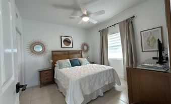 Turquoise Haze has been meticulously renovated to bring comfort and beauty to our guests. As you walk in through the front door, your eyes will trail through the condo to the sliding glass doors leading to the turquoise and deep blue horizon. Once on the balcony, you will discover the only condo with an intimate seating area comprised of a large outdoors couch, two armchairs and a cocktail table perfect for conversations or to read a book while you inhale the clear crisp air and relax! There is also a dining table and four chairs for alfresco dining with a view of the iconic Caribbean Sea. You will enjoy the most spectacular sunrises with your cup of coffee from this balcony. In the evenings you can also catch a glipmse of the setting sun in the Northwest horizon from this balcony due to its singular corner location. There is still more to discover as you go back inside the condo. You will love the abundance of light, height of the ceiling and airiness that the condo offers from the corner of the second and upper floor. There is no third floor so our guests will not hear steps or rolling chairs from up above as it is the case on bottom floor condos. Turquoise Haze boasts three extra-large new double pane windows and new wall to wall double pane sliding glass doors with views of the Caribbean Sea and the Northwest horizon. Turquoise Haze’s unique location provides the best views and most natural light of all condos in Castaway Coves.In the kitchen, you will not mind washing dishes from the new kitchen undermount sink in the evenings as you catch a glimpse of the setting sun. It is an experience that this condo offers at every sunset. You will love the sparkling quartzite kitchen countertop with its waterfall effect. There is seating at the kitchen peninsula and plenty of space to set up your laptop or special dishes for your gourmet meals. The kitchen appliances are all high end, high efficiency, and new Frigidaire Gallery brand. You will be able to bake, convection bake, boil, broil, roast and even air fry with the new glass top, stainless steel stove and oven. The microwave doubles up as an oven. So technically there are two ovens in the kitchen. You will be able to bake a pie and bake a ham from this kitchen with ease, saving you time to enjoy the beach a little longer. The new washer/dryer combination is front load and so quiet that you will forget you were doing your laundry. The new dishwasher is also very quiet and has a large interior capacity with a pullout shelf for those odd-sized serving spoons, serving forks and spatulas. The kitchen is also equipped with high end small appliances such as Keurig for the perfect cup of coffee and a Ninja for delicious smoothies and mixed drinks. The combined dining and living areas provide ample seating for guests to spread out. The downlights and lamps in the living room will provide extra lighting for reading messages on your cell phone or comfortably reading a book on any of the couches. Most other condos do not have the extra four downlights and are dimly lit. The new Monte Carlo fan in the living room is quiet and provides air control in both directions. There are two twin size Murphy beds in the living room for extra sleeping accommodation. The condo also comes with fast speed WIFI and most ample selection of cable channels for three TV sets. You will be able to watch American Sports games from the comfort of the condo instead of having to go to the bar. You will love the newly renovated Spa-like bathrooms. They are the most renovated and modern bathrooms in Castaway Coves. The tiled tub enclosures and vanities boast the impressive Italian craftmanship that has become popular with high end boutique hotels. You will also be able to soak in the sleek rectangular tub or take a shower. A new electric water heater was installed for on the demand hot water. The master bedroom is spacious; has an elegant Monte Carlo fan and light fixture; soft and cool cotton linens on a king-size bed; thick mattress topper; new double pane sliding glass doors with black-out curtains and sound block for the perfect sleep; and all the storage space you will need. The master bedroom also includes a desk and chair next to the sliding glass doors which provides ample natural light and an amazing view as you work or answer emails in the privacy of your own space. The WIFI speed will allow you to work away from home or office. The secondary bedroom is located at the other end of the condo with access to the hallway bathroom. This bedroom has very similar attributes as those of the master bedroom including a Monte Carlo fan and light fixture, ample storage, soft and cool linens on a queen size bed, foam mattress topper, safe, black-out curtains over new Zebra blinds and double pane window for the perfect sleep.