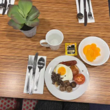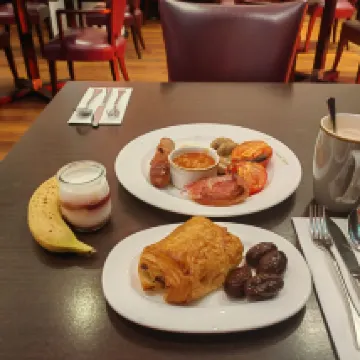 Der Transport zum Hotel ist sehr praktisch. Die Bushaltestelle ist direkt vor der Tür. Das Zimmer ist sehr sauber und das Frühstück ist sehr gut. Es liegt im Zentrum von Edinburgh auch wenn wir sehr spät zurückkommen.