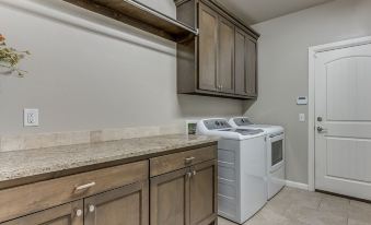 This spacious floor plan features a mix of wood floors and tile, eliminating all carpet from the home! A flex room can be used as a formal dining or study. The living room features a wood burning fireplace and large windows. A well thought out kitchen can be found with granite countertops, stainless steel appliances and walk in pantry. Secondary bedrooms feature ceiling fans and large closets. The private master bedroom features a large bathroom and spacious walk in closet. A 3 car garage is rare in Inspirada and perfect for storage! The back yard is fully fenced with a covered patio. The kitchen has a range, oven, microwave and dishwasher and is fully stocked with utensils as well.About pets:No pets allowed.About checkOut:Check out before 11:00 AM.About children:Children allowed: ages 0-17.About checkIn:Check in after 4:00 PM.About smoking:Smoking is not permitted.About minBookingAge:Minimum age to rent: 25.About events:No events allowed.