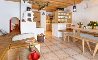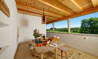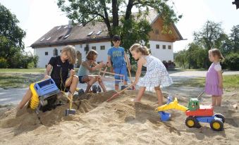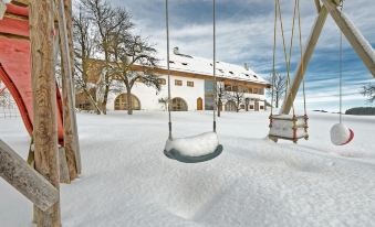 You live in our romantic, unique farmhouse with historical roots. Our farm was completely rebuilt just 7 km northwest of Lake Chiemsee, nestled in a fantastic lake landscape. Relax in one of the ten exclusive holiday apartments with real Chiemgau farmhouse parlors, historic tiled stoves, solid wooden ceilings, fairytale vaults and handcrafted furniture. Each of our dream apartments has two or three bedrooms with unusual, cozy sleeping worlds. In addition to the fairytale atmosphere, we offer state-of-the-art equipment in every apartment, such as a dishwasher, microwave, WiFi, telephone, satellite TV, DVD, CD + MP3 player, radio, fully automatic ventilation, whirlpool (jacuzzi) and other amenities. Breakfast service, equipment for small children, medieval vaulted cellar, sauna, table tennis, children's play area, adventure playground, lawn, washing machine, dryer. For those interested, there is also a stable with farm animals, the cattle and calves look forward to your visit. There are also rabbits, guinea pigs, cats and chickens for petting. As cozy as before, comfortable as today.